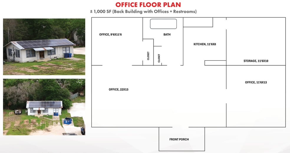 ± 1,000 SF (Back Building with Offices + Restrooms)