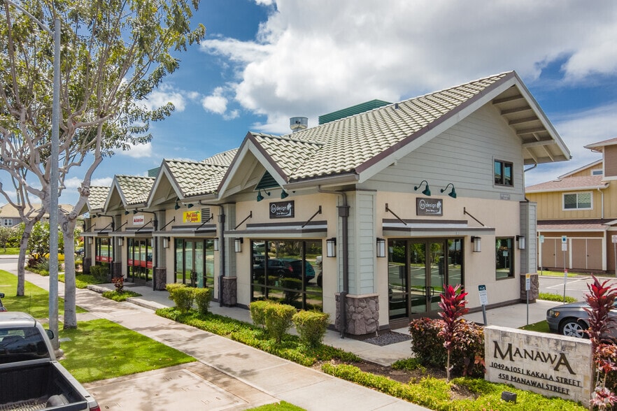 Discover the perfect opportunity to establish your business in this BMX-3 zoned retail space, ideally situated in the vibrant residential community of Mehana in Kapolei. Approximately 720 SF, which includes a versatile 2nd-floor loft space of 180 SF. Enjoy the airy feel of vaulted ceilings, complemented by textured wall treatments that add character to the space. Equipped with 2 split system air conditioning units and a large ceiling fan for optimal comfort. Modern lighting fixtures enhance the ambiance. Comes with 4 assigned parking stalls for convenience. The building offers a private lavatory for ease of operation. Ownership in Mehana includes access to the neighborhood's amenities, including community parks, a pool, a recreation center, and keiki parks. Don’t miss this chance to secure a prime retail space in a thriving community! Contact me today to schedule a showing.