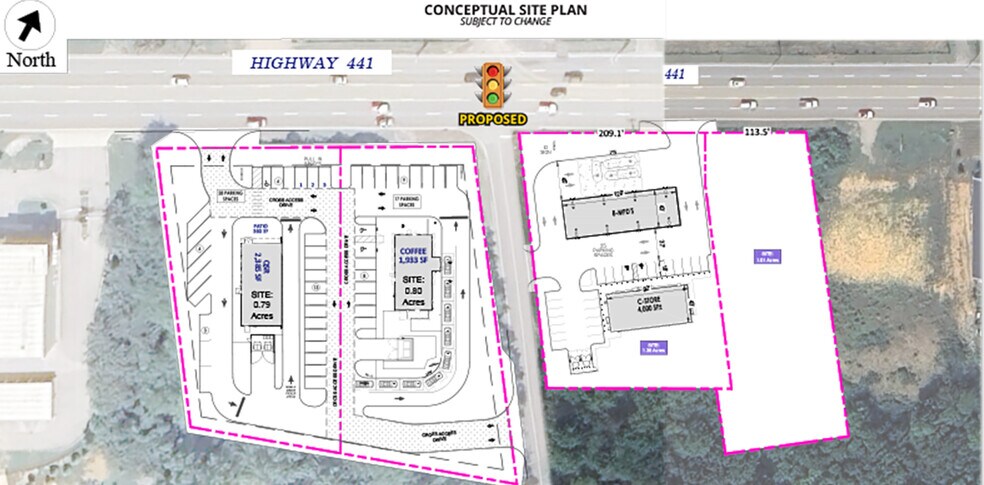 Parcel sizes are conceptual and subject to change. Up to ±2.36 acres zoned BT (Commercial) available.