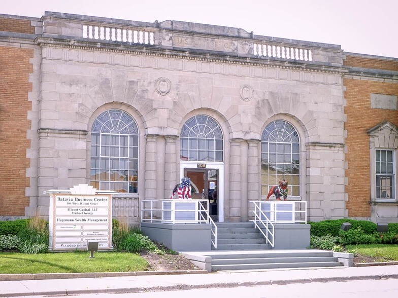 Le centre d'affaires de Batavia, anciennement le bureau de poste de Batavia, jouit d'un excellent emplacement au centre-ville et d'une apparence majestueuse. Le hall d'entrée rénové vous attirera avec ses planchers et ses murs en marbre. Les espaces de bureau au premier étage sont assez vastes avec de grandes fenêtres qui attirent la lumière du soleil tout au long de la journée. Le vitrail est jonché dans tout le bâtiment. Plus de 26 000 voitures passent chaque jour sur la rue Wilson qui traverse la rivière Fox, qui n'est qu'à un pâté de maisons de là. Joignez-vous à la Chambre de commerce de Batavia et à de nombreux autres cabinets professionnels au cœur de Batavia. Situé à proximité des centres commerciaux, de nombreuses entreprises et de la rivière Fox. Le centre-ville de Batavia est un endroit agréable pour vivre, travailler, magasiner et jouer.