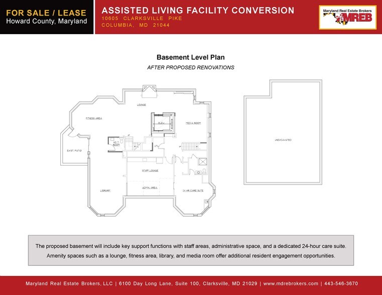 Fully sprinklered 16-bed assisted living conversion opportunity on 1.25± acres in Howard County. 20 private rooms, public water/sewer, R-12 zoning, ample parking, and strong proximity to hospitals and community amenities. Quiet, scenic setting with high ceilings and abundant natural light. Offered for sale or lease.