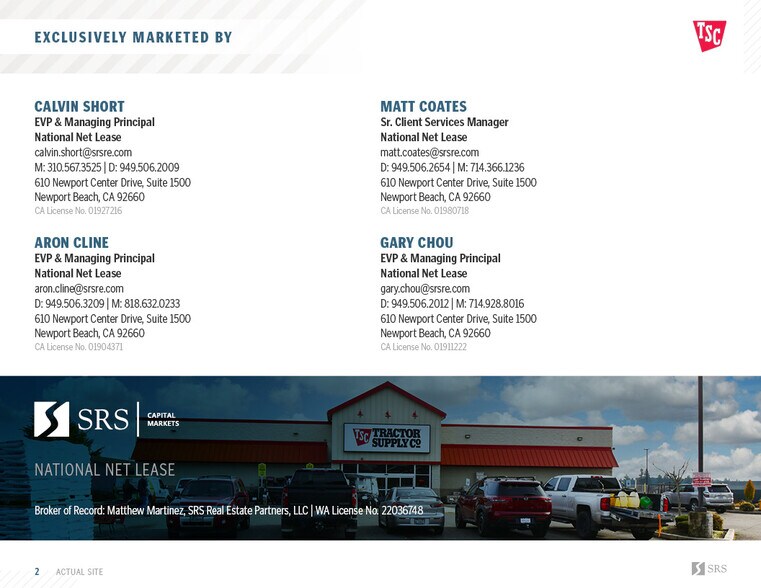 SRS National Net Lease is pleased to offer the opportunity to acquire the fee simple interest (land & building ownership) in a NN leased Tractor Supply Co. (Nasdaq: TSCO) investment property located in Yelm, Washington. The corporate entity recently signed a 15-year deal, demonstrating their commitment to the site. The lease features scheduled 5% rental increases throughout the initial term and at the beginning of each option period, steadily growing NOI and providing a hedge against inflation. The lease is NN with limited landlord responsibilities, making it an ideal, low-management investment opportunity for a passive investor. Tractor Supply Company operates more than 2,400 locations across the United States and continues to perform as the nation’s leading rural lifestyle retailer, reporting strong financial metrics and consistent revenue growth.