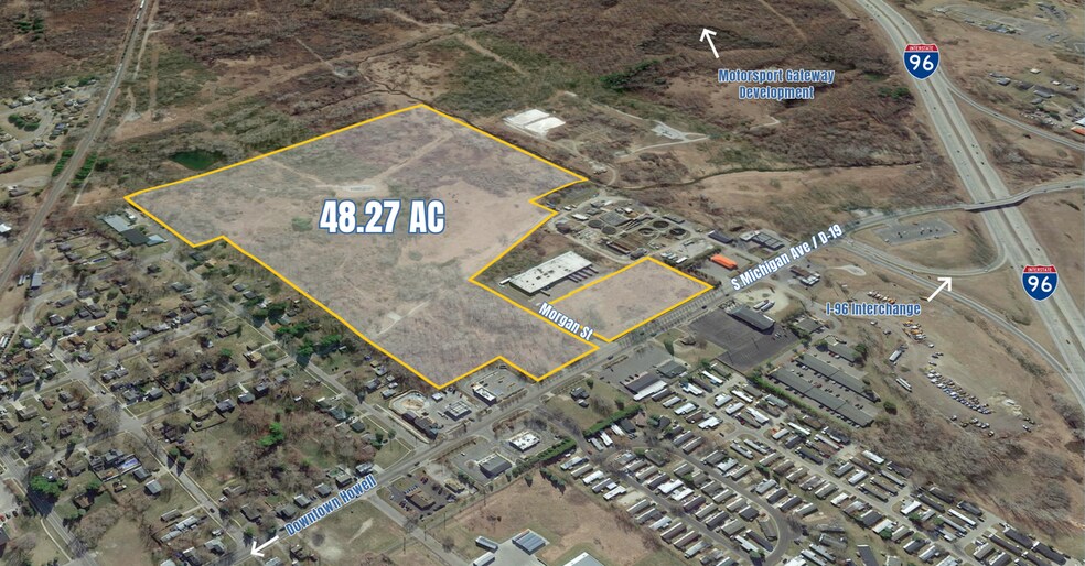 Peut être acheté séparément ou conjointement avec des terrains d'aménagement contigus totalisant 48,27 acres. L'assemblage est adjacent au projet Howell Motorsports Gateway. Façades sur l'avenue Michigan et le chemin Pickney (D-19). Eau et égout municipaux.
