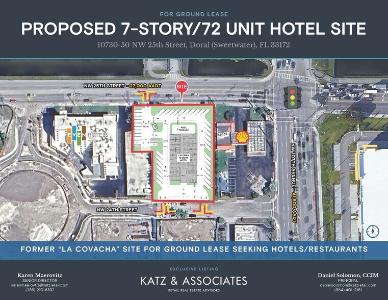 • Proposed 7 Story / 72 unit hotel for ground lease • Property sits on ±0.86 acres • Will also consider restaurants • Located in the heart of the Doral market surrounded by dense residential and heavy daytime population • Over 68,000 AADT at the intersection