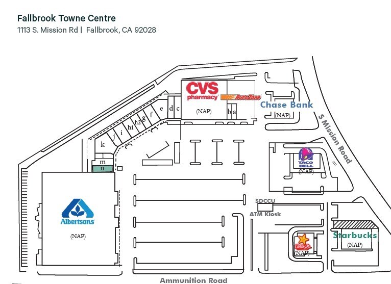 Fallbrook Towne Centre 1081-1139 S Mission Rd 100–2 445 pi² d'espace disponible • Fallbrook, CA 92028