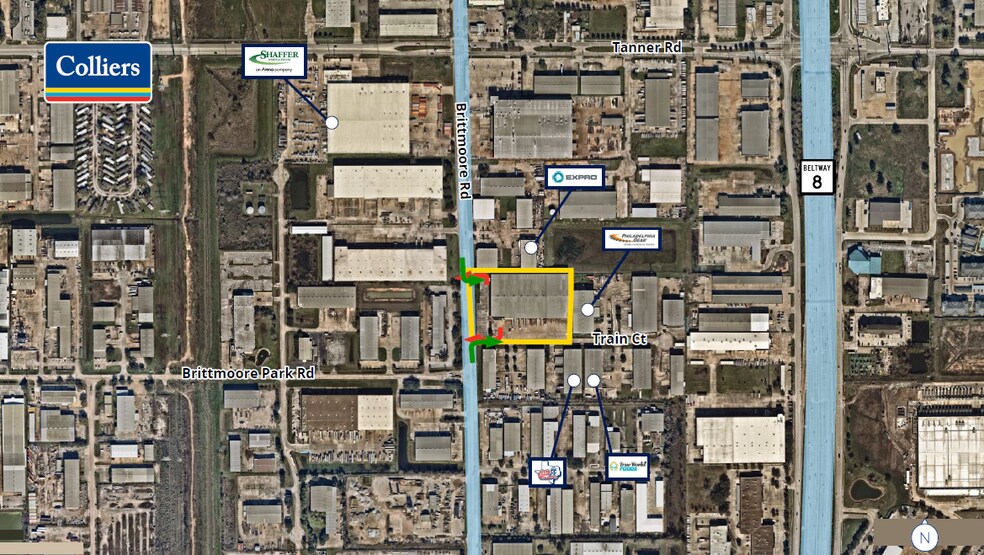 Property Overview • ± 112,347 SF • ± 10,000 SF office (two-story) • 32’ Clear height • 28 Dock doors • (4) Big Ass Fans • 30,000 lb levelers on every door • Dock lights & pads • Grade & Semi dock loading • Direct access to Brittmoore Road • Available 11/01/2025 • Sublease expires December 31, 2027 • Longer term available