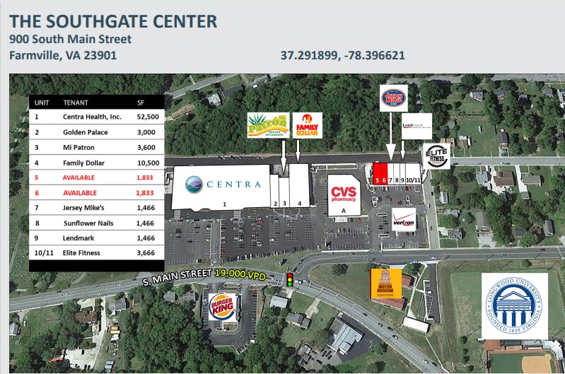 The Southgate Center 1099 S Main St 1 833–3 666 pi² d'espace disponible • Commerce de détail • Farmville, VA 23901
