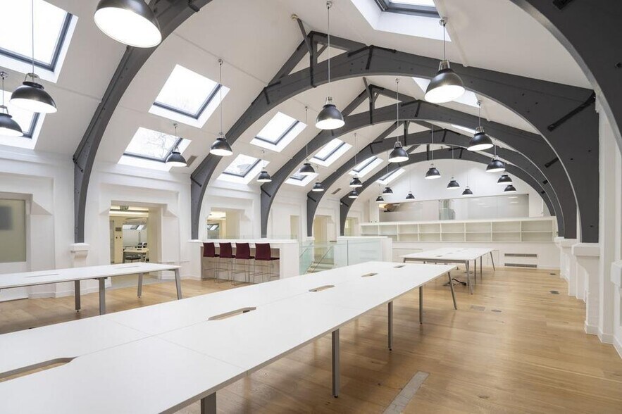 Self-contained warehouse-style office space within a converted chapel, featuring impressive ceiling heights, an existing fit out, and six dedicated parking spaces.Available fully fitted on a short-term lease until October 2028, or on a longer-term basis by arrangement with the landlord.109a Regent’s Park Road is situated in the heart of Primrose Hill, a vibrant neighbourhood in North London. The area offers excellent transport connectivity, with Chalk Farm and Camden Town Underground stations nearby, providing access to the Northern Line. The location boasts a charming high street lined with independent boutiques, cafes, and specialty shops.