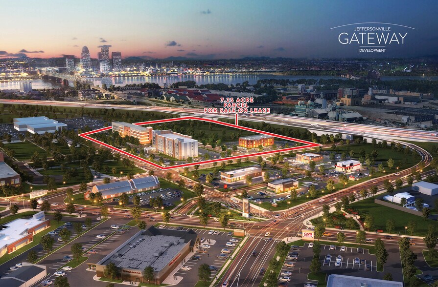Le nouveau complexe Jeffersonville Gateway est offert à la vente sur une parcelle de développement de 7,25 acres, idéale pour les commerces de détail, les hôtels et les bureaux. Un terrain de 1,17 acre situé directement à côté de Starbucks, est également disponible, avec une visibilité depuis l'I-65. C'est une excellente occasion de se joindre à Starbucks, McDonald's, Jimmy John's et Wingstop (bientôt) dans le cadre du nouveau projet Jeffersonville Gateway. Ce projet à usage mixte se trouve à l'intersection bien en vue de la 10e rue et de la rue Spring, à côté de l'Interstate 65. Un feu de signalisation est prévu à la 10e rue et à la rue Spring, et un feu de signalisation est prévu pour l'intersection de la 9e rue et de la rue Spring. Le développement est situé directement en face de l'hôpital Norton Clark, un hôpital régional de 241 lits qui dessert plus de 82 000 patients par année. Le site offre une excellente visibilité et un accès à des affiches emblématiques. La signalisation des locataires figurera sur un grand panneau de pylône et un panneau de monument. Le site se trouve à proximité du centre-ville de Louisville, juste à la sortie 1, et constitue la « porte d'entrée » du centre-ville de Jeffersonville, dans l'Indiana.