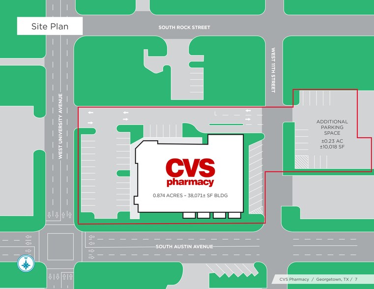 The CVS property is located on the northwest corner of the high traffic intersection of South Austin Avenue and West University Avenue – one of the premier intersections in Georgetown in one of the fastest growing regions in Texas. South Austin Avenue is a primary north/south corridor in Georgetown, with traffic counts of approximately 14,800 VPD, and West University Avenue is a major east/west thoroughfare with 35,489 VPD. Surrounding retailers include Wells Fargo, Golden Chick, Exxon, Little Caesars, and First Texas Bank, along with a variety of other national and regional tenants. Directly west of the property along W University Ave is a dense retail corridor that includes Wolf Ranch Town Center, a dominant shopping center anchored by Target, T.J. Maxx, Kohl’s and Best Buy, among other national retailers, dining, and entertainment options that drive consistent consumer traffic to the area. Other notable retailers on W University Ave include H-E-B, Academy Sports + Outdoors, Hobby Lobby, Floor & Décor, and ALDI, to name a few. South Austin Avenue is also a busy commercial corridor through Georgetown, providing direct access to residential neighborhoods and retail hubs, while West University Avenue connects the property with Interstate 35 and downtown Austin and the greater Central Texas region.