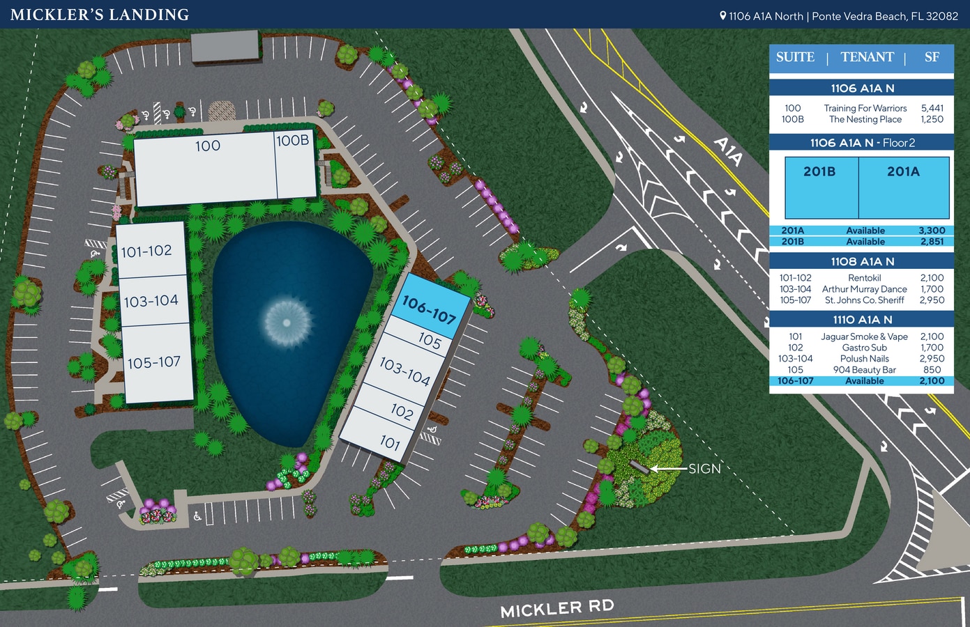 Micklers Landing 1106-1110 A1A Hwy N 2 100–8 251 pi² d'espace disponible • Ponte Vedra Beach, FL 32082