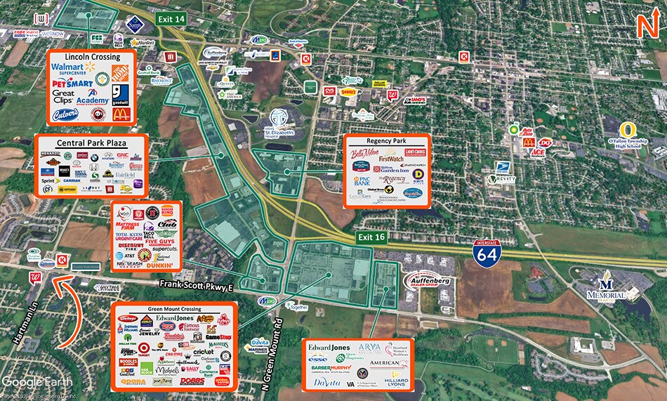 Well maintained professional office suite available on the second floor of Catholic & Community Credit Union’s Shiloh branch. Suite 201 B is an open L-shaped office located on the south-facing side of the building. Shared entryway and elevator with the credit union and two other professional office users. Key fob accessible. Shared ADA restrooms with neighboring tenants. High-end finishes throughout. Highly visible office complex located on the corner of Hartman Ln and Frank Scott Parkway with a combined ADT of 26,000. 1.5 miles from O’Fallon and Shiloh I-64 exits.d ADT of 26,000. 1.5 miles from O’Fallon and Shiloh I-64 exits.