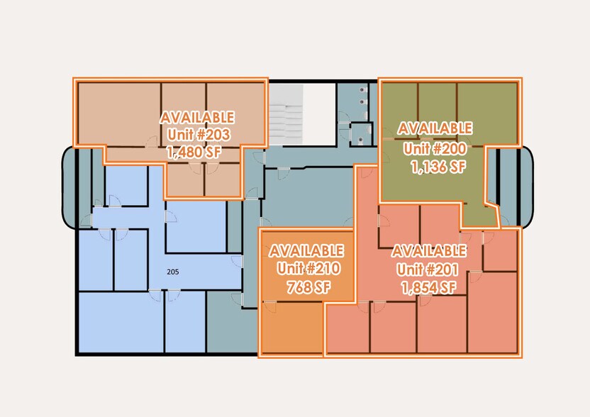 | 2e étage, ste 203 | 1 480 pi² | 3-5 ans | 27,35 $ CAD/pi²/an 2,28 $ CAD/pi²/mois 40 482 $ CAD/an 3 373 $ CAD/mois | Bureau | construction complète | Maintenant |