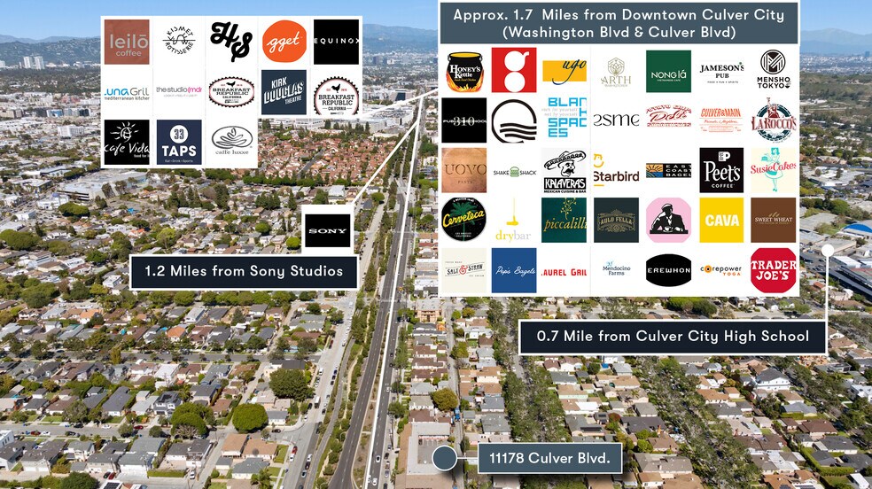 - Prime Westside location within 1.7 miles of Downtown Culver City and 2.6 miles from Marina del Rey.