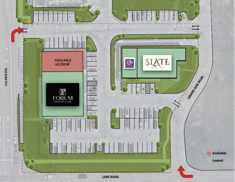 - Accessible via both Grand Oak Blvd and Calder Dr.