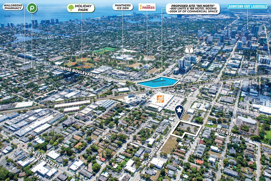 - 1.48 Acres zoned CB situated along NE 4th Ave just north of Sunrise Blvd