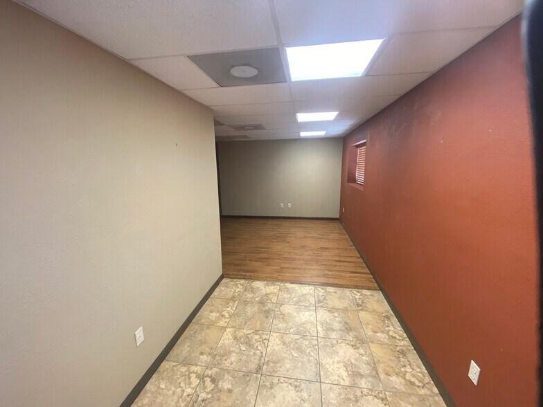 1,200 SF office space with ample parking and fenced yard area, ideal for professional office, counseling, medical, administrative, or small business use. The interior features updated vinyl plank flooring throughout, creating a clean, modern look with low-maintenance durability. The layout includes a large open workspace, private office(s), break area with built-in cabinetry, and a full kitchen with sink, microwave, refrigerator, dishwasher, and ample storage. One restroom on-site. Exterior offers ample parking, secure fencing, and additional yard space suitable for storage or outdoor use. The building has excellent visibility and easy access.