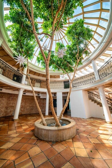 a grand atrium with a dramatic circular skylight—a striking design element that created the “destination” feel for which the building became
