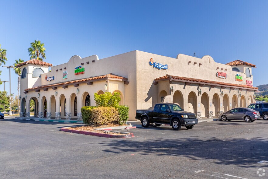 Espace de restauration très en vue adjacent à Regal Cinemas, sur le boulevard San Marcos.