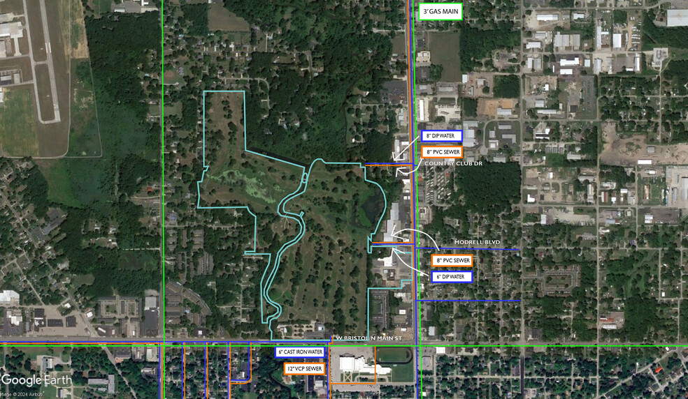 - L'intersection signalée aux rues N Main et E Bristol offre un prolongement naturel de la route pour le réaménagement d'un ancien terrain de golf