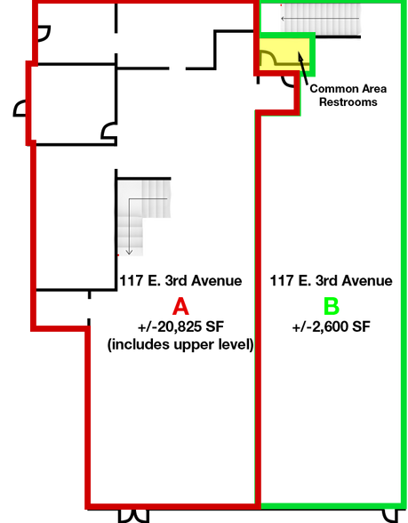 Large retail/office space can be subdivided - with optional 10,000+ SF of lower level storage Small retail/office space is currently open, but can be closed off