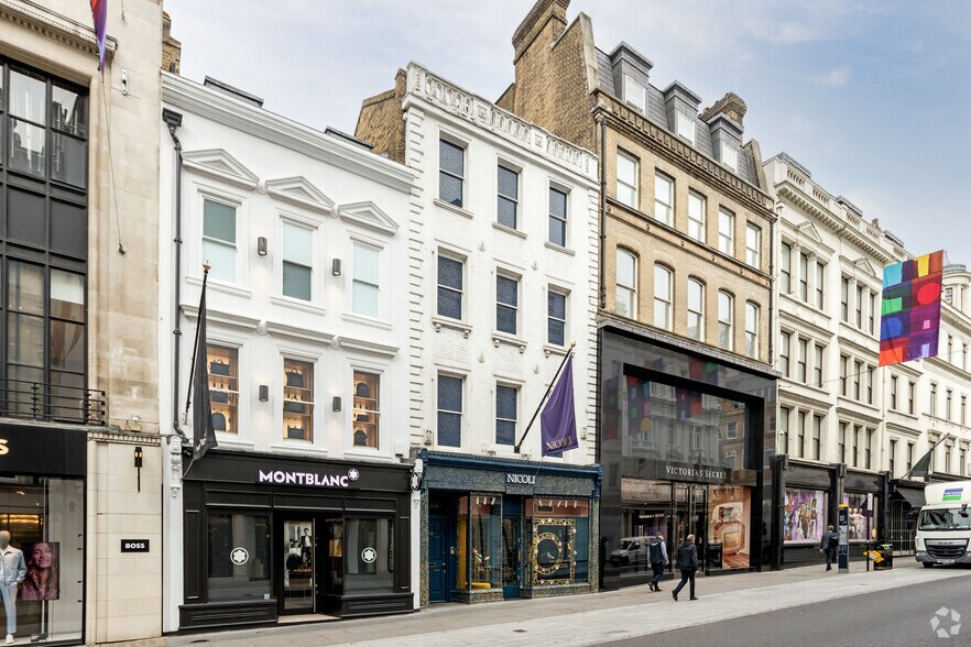The building is situated on the west side of New Bond Street, close to its junction with Brook Street, in Mayfair’s luxury retail district. The property is located within short walking distance from both Bond Street Station (Elizabeth, Central and Jubilee lines) and Oxford Circus station (Victoria, Central and Bakerloo lines)