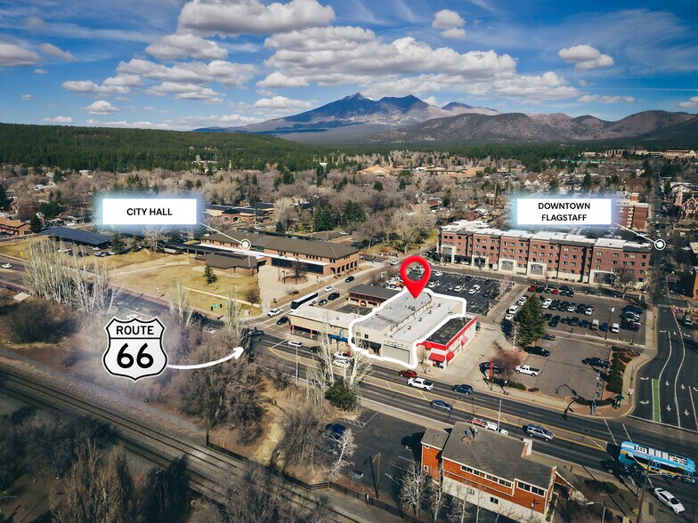 Available for $8,000/Mo NNN! 118 W Route 66 represents one of the most visible and strategically positioned retail opportunities in the region. Fronting the world-famous Route 66 corridor, the property benefits from uninterrupted exposure to a steady blend of local residents, university students, and year-round tourists who move between Flagstaff’s restaurants, shops, hotels, and cultural attractions. Few buildings in the downtown core offer a combination of authentic character and functional layout, making this availability a rare chance for operators seeking immediate impact and long-term brand presence. The building features a street-facing retail showroom supported by dedicated operational and storage areas, ideal for concepts requiring both display and back-of-house capability. The property has access to the adjacent hotel parking lot during business hours, providing an operational advantage unparalleled in downtown Flagstaff, where parking scarcity can significantly limit customer access and staff convenience. This asset removes friction, supports higher customer turnover, and strengthens the efficiency of daily operations. Surrounded by Northern Arizona University, regional tourism drivers, and one of Arizona’s most active pedestrian districts, the property is exceptionally well-positioned for outdoor lifestyle brands, destination retail, specialty shops, or established local businesses seeking to elevate their footprint. Its genuine Route 66 identity and steady foot traffic allow new occupants to align with the heritage, culture, and vibrancy of downtown Flagstaff. With flexible interior adaptability and highly visible signage opportunities, the property offers both a strong foundation and significant upside for tenants ready to capitalize on Flagstaff’s dynamic economic environment and diverse customer base.