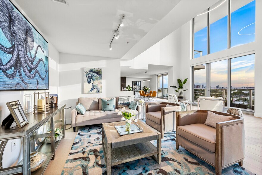 100 résidences luxueuses en bord de l'eau qui allient l'élégance moderne à la beauté naturelle du sud de la Floride. Ces résidences offrent des plans d'étage spacieux, de vastes balcons privés avec BBQ, ainsi que des fenêtres pleine hauteur résistantes aux impacts, offrant des vues panoramiques sur la Middle River, la ligne d'horizon de la ville, les parcs et l'océan Atlantique. Conçus avec un accent sur l'esthétique contemporaine, les intérieurs présentent des finitions haut de gamme, des électroménagers Sub-Zero et Wolf, ainsi que des armoires italiennes.