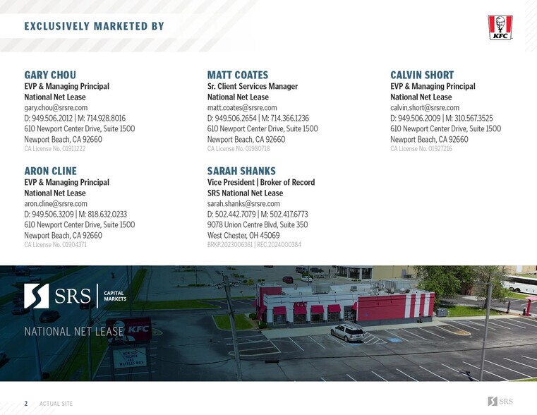 KFC | 13 Yrs NNN | 840+ Unit Guarantor 11970 Lebanon Rd 3 163 pi² Commerce de détail Immeuble Sharonville, OH 45241 2 240 312 $ CAD (708,29 $ CAD/pi²) 6,60% Taux de capitalisation