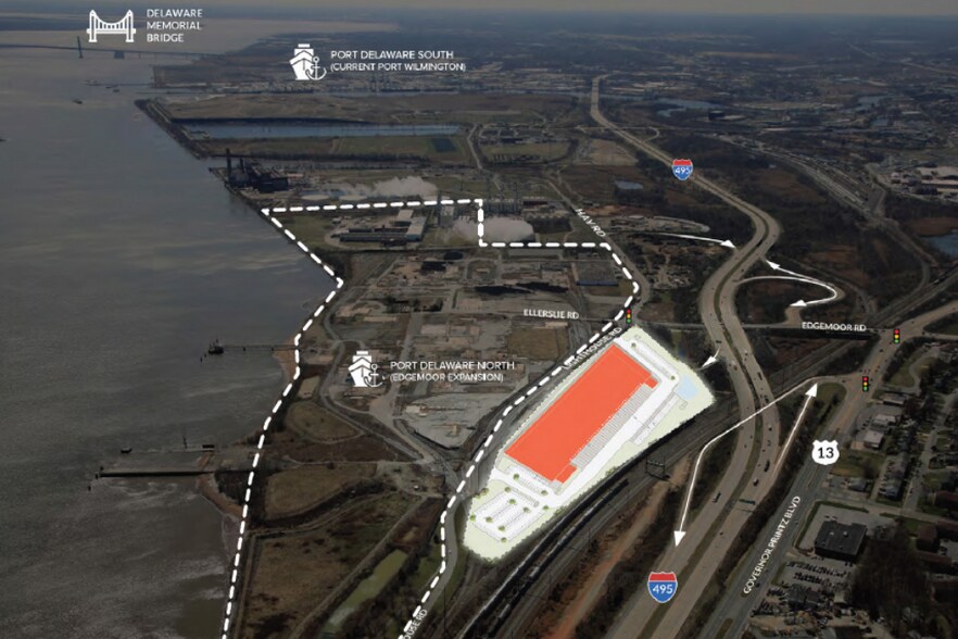 Fully approved Class A warehouse available for lease as 171,940 ± SF light industrial/warehouse or 1-12 acres of industrial outdoor storage (IOS). Located in N. Wilmington with easy access to I-495 and the Wilmington Port. Rail possible with potential Norfolk Southern Service. 12 minutes to Wilmington Airport and 20 minutes to Philadelphia International Airport.