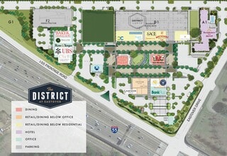 Le district d'Eastover est un projet d'aménagement à usage mixte de 21 acres comprenant plus de 200 000 pieds carrés de bureaux de classe A, 57 000 pi2 de commerces de détail et de restaurants, et un nouveau Marriott Residence Inn. Des espaces réservés aux détaillants et aux restaurants sont disponibles, tout comme quatre lots supplémentaires de tailles variées pour le développement futur ou la construction adaptée.