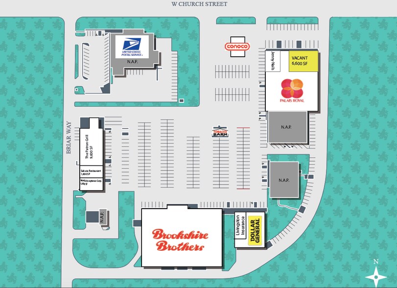 | Magasins | 12 | Rues transversales | W Church St & Holly Ave |