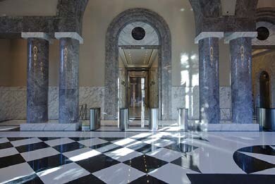 - Café, boutique de produits divers, espace de conférence et autres commodités dans l'immeuble.