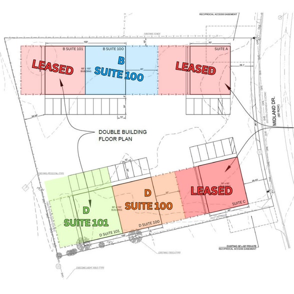 The proposed development sits in a highly convenient location just North of W. Wall St. (Business 20), offering effortless accessibility to Interstate 20 and Loop 250. This property enjoys a close proximity to downtown Midland and the Midland International Airport, making it an advantageous and well-connected area. Development site is divided into 6 individual lease spaces encompassing 4 buildings. Two buildings will be stand alone 3,000 SF Units. The other two buildings will each offer 6,000 SF with attached, but separate 3,000 SF Units. The development totals 18,000 SF of leasable space in 6 separate spaces. Each Unit is served by city utilities, paved parking and fenced yard/storage area.