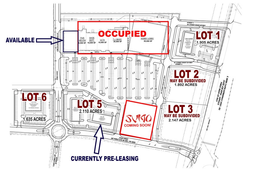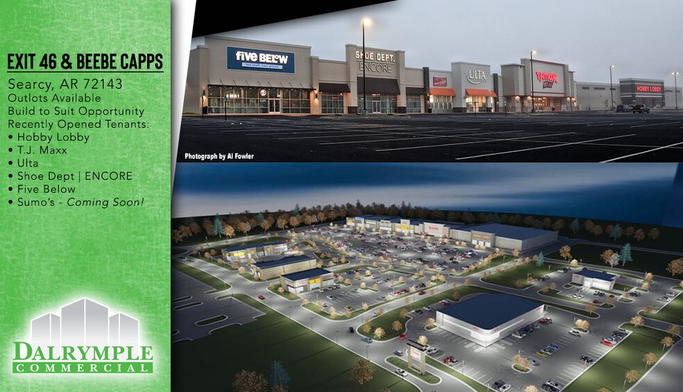 Parcelles externes disponibles à la vente, à bail foncier ou à construire sur mesure. Searcy City Center est un complexe de centres électriques commerciaux situé au cœur de Searcy, en Arkansas, à 45 minutes au nord de la route 67/167 Little Rock, qui deviendra bientôt l'Interstate 57. Searcy a une communauté universitaire et médicale en croissance constante. Dalrymple Commercial s'engage à apporter des services multifamiliaux, des divertissements et des commerces de détail dans la région. La propriété se trouve à moins d'un mile de l'Université Harding, sur l'artère principale de Searcy. La propriété bénéficie d'une visibilité directe depuis les États-Unis 67/167, Future I-57. La gamme préliminaire de locataires de l'aménagement comprend des détaillants nationaux tels que Hobby Lobby, TJ Maxx, Shoe Department, 5 Ci-dessous et Ulta. Restaurant japonais SUMO. À côté de ce développement se trouve une nouvelle Academy Sports en construction.