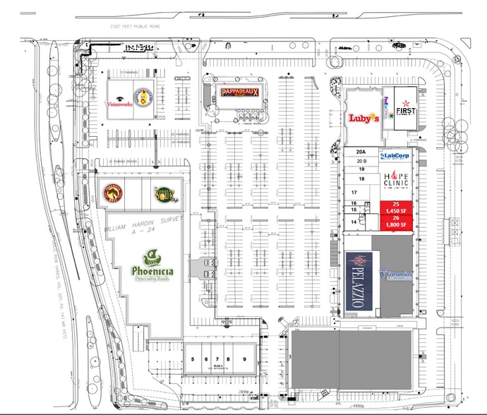 | Superficie totale disponible | 3 250 pi² | Façade | 500’ le Westheimer Road |