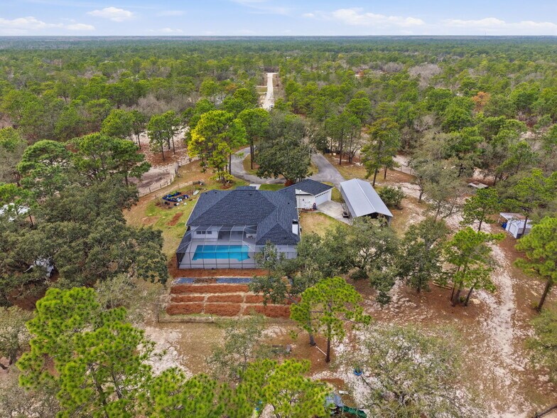 Experience the perfect blend of comfort, functionality, and true Nature Coast living with this exceptional 3,000 sq. ft. three-bedroom, three-bath home with a dedicated office big enough for multiple people, nestled on 11 acres fully fenced and cross-fenced in the Royal Highlands -- a community that allows terrain vehicles. Designed for both everyday living, working and entertaining, this spacious home features a formal living room, dining room, and a warm, inviting family room with a propane fireplace. The kitchen is beautifully updated with granite countertops, brand-new stove and dishwasher, breakfast bar, and a cozy breakfast nook overlooking the property. Granite continues in all bathrooms for a cohesive, upscale feel. Brand-new laminate flooring flows throughout, complemented by recessed lighting on dimmers for the perfect ambiance. Multiple sliding glass doors provide abundant natural light and seamless access to the pool area, creating the ideal indoor-outdoor lifestyle. The primary suite offers a true retreat, with two walk in closets, an elegant trey ceiling and features a luxurious master bath with double sinks, a separate commode room, an oversized two-person beautifully tiled walk-in shower, and a relaxing Jacuzzi tub. The additional bedrooms are generously sized, and the dedicated office is large enough to comfortably accommodate three people working in the same space. A well-appointed laundry room includes a sink and built-in cabinetry for added convenience. One of the secondary bathrooms offers direct access to the pool area, making it a perfect pool bath for guests and entertaining. The oversized garage provides ample space for a workshop and additional storage. Step outside and enjoy a fully equipped agricultural setup. The property includes a 100 x 24 pole barn, a 20 x 60 metal RV port, and a 12 x 16 shed with lean-to. Four irrigated pastures with water, a circular driveway, RV hookup, brand-new chicken coop, garden area, and a brand-new front gate with Ghost panel system and new paint in and out. Relax by the pool with an outdoor pool shower, knowing you also have a new roof 202 for peace of mind. A 175-foot-deep well produces clean spring water with no filter needed. This Nature Coast property is surrounded by incredible outdoor opportunities. The 34,000-acre Chassahowitzka Wildlife Management Area is just 2 miles away, and the 50,000-acre Citrus Wildlife Management Area is only 10 miles down the road -- offering hiking, biking, horseback riding, camping, and hunting. Three saltwater boat ramps are within 20 minutes, and Pine Island Beach is just a short 15-minute drive. Space, privacy, modern updates, and unmatched access to Florida's outdoor lifestyle -- this is the complete package.