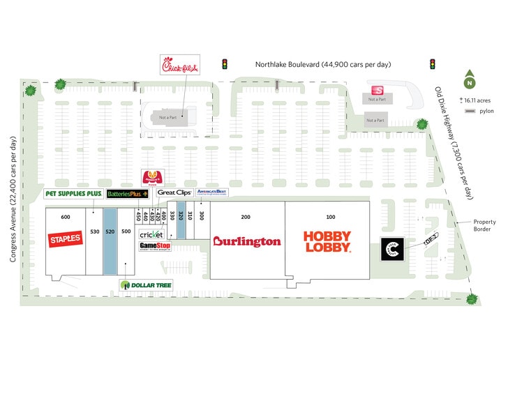 - Joignez-vous aux locataires existants : Hobby Lobby, Burlington, Staples, Dollar Tree, Pet Supplies Plus.