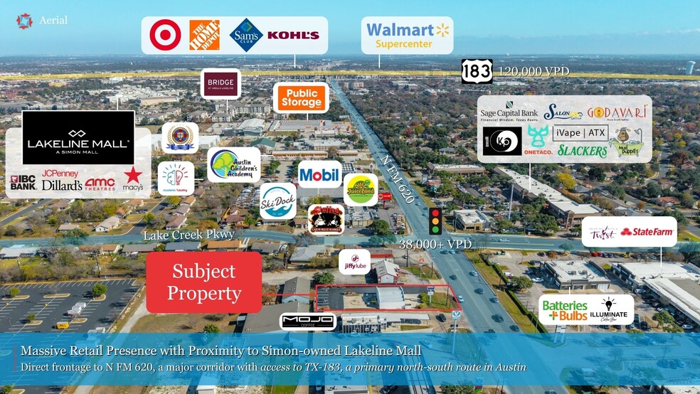 - Excellent Visibility: Frontage to 38,000+ VPD on FM 620; Immediate proximity to the 214,000 SF Lakeline Mall (Simon Property Group)