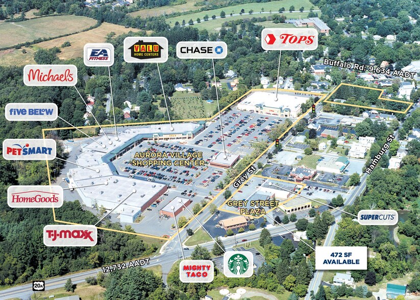 Aurora Village Shopping Center 123 Grey St 472 pi² d'espace disponible • Commerce de détail • East Aurora, NY 14052