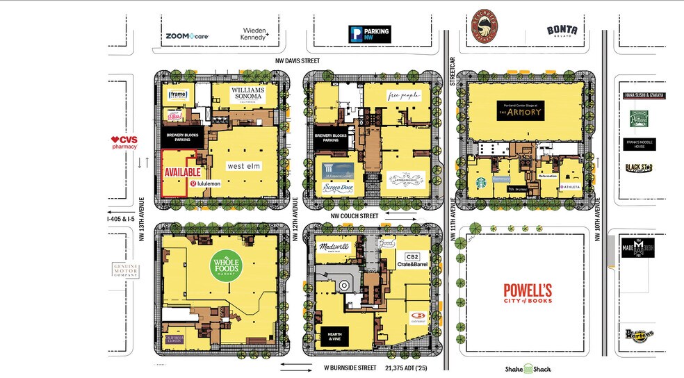 Formidables opportunités de commerce de détail sur NW Couch Street dans les Brewery Blocks. Emplacement rare de catégorie A+ dans le sud de Pearl, avec une excellente co-location, ancrée par Whole Foods et adjacente à West Elm, Williams Sonoma, Starbucks, Screen Door, CB2, Good Coffee, et bien plus encore. Stationnement sécurisé hors rue (horaire/journalier/mensuel) disponible dans le garage public dédié. La nouvelle direction du bâtiment investit activement dans des améliorations prévues pour l'ensemble du projet. Veuillez ne pas déranger les locataires actuels.