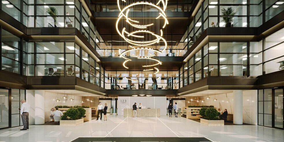 Le 123, rue St Vincent, est un immeuble de bureaux emblématique de 9 étages, réaménagé derrière une façade entièrement vitré, avec de grandes plaques de plancher de 15 000 pieds carrés.