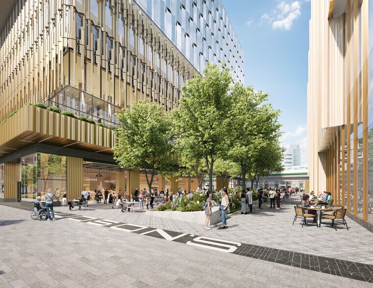 - Une collection de détaillants, des lieux de réunion et d'événements à la fine pointe de la technologie, des concepts uniques de restauration et des espaces publics activés seront disponibles sur place.