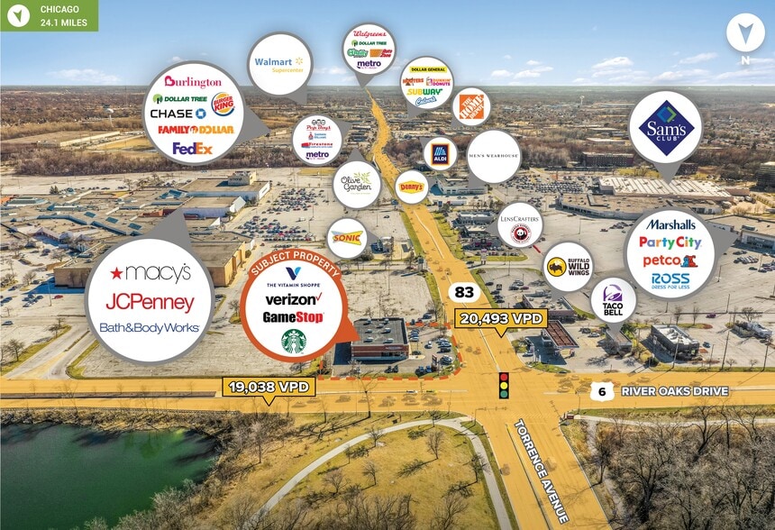 Strategically located at a signalized hard corner, the property commands massive traffic flow due to it’s proximity to the River Oaks Shopping center, which is regional economic driver in the southland of Chicago. The city is also proposing a $110 MM plan to update the center.