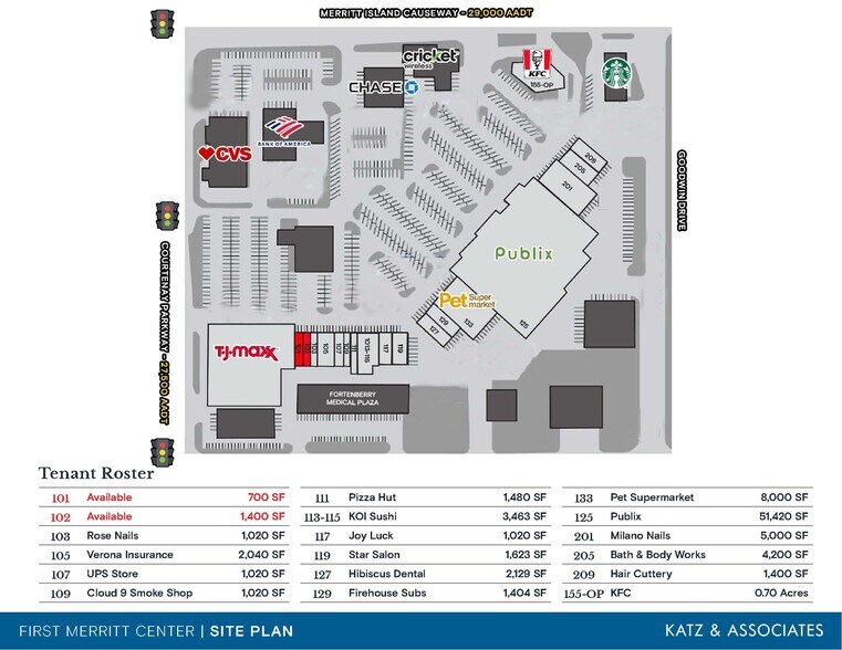 Available outparcel in a Publix-anchored center with excellent frontage along Merritt Island Causeway. Join First Merritt Center ideally located in the heart of the Merritt Island trade area retail corridor. Prime visibility, easy access and ample parking. Surrounding retailers include Pet Supermarket, Firehouse Subs, Hallmark, and Pizza Hut, TJ Maxx, KFC, Bank of America, CVS, and Starbucks.