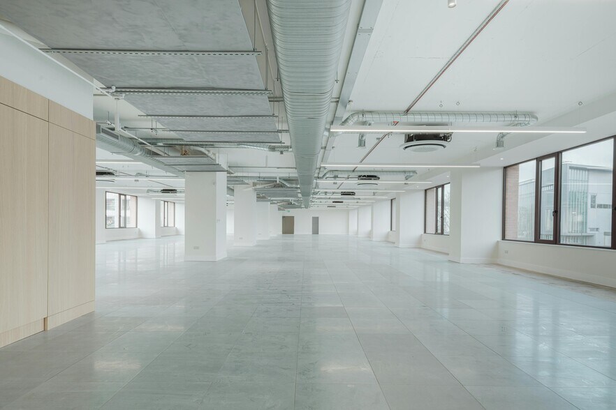 The ground floor comprises a total of 9,320 sq ft (865.86 sq m), which can be divided and let separately in portions of 1,302 sq ft, 2,917 or 4,800. The space is entirely open plan and benefits from quadruple glazed frontage, 3Phase electricity, natural light at the rear and loading provisions. The space is currently in Shell & Core condition.