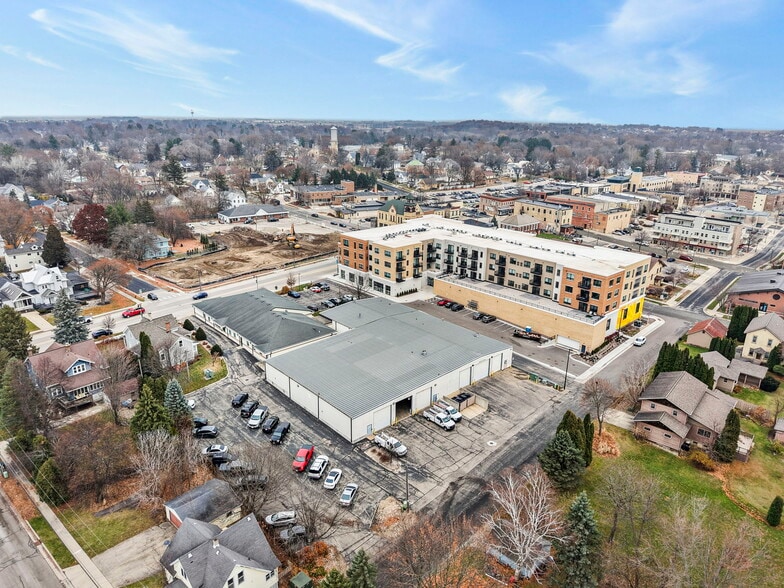 This expansive 27,550 SF commercial building (plus 8,746 SF of additional basement space) combines office and retail space (with existing drive-through window) with expansive garage / shop space that could support a wide range of production or vehicle service uses. The shop features six oversize drive-in doors, floor drains, a wash bay, and make-up air. The site features a drive-through lane, 36 onsite parking stalls and is a short walk away from a large public parking lot. Adjacent house & garage are also included.