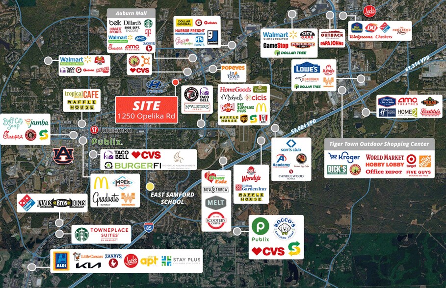 • 1 AC on Opelika Road, one of Auburn’s key commercial corridors • Excellent visibility and access in a high-traffic area • Strong daily traffic counts and great signage exposure • Easy access to Downtown Auburn, Auburn University, and surrounding neighborhoods • Near national brands, shopping centers, and dense residential neighborhoods • Positioned in a high-demand growth area