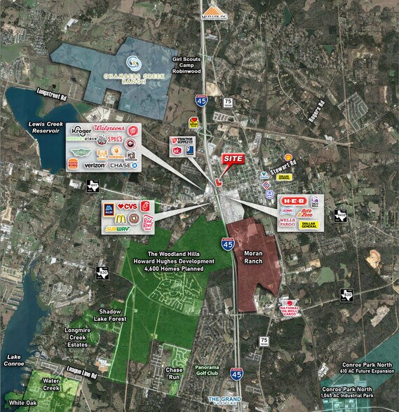 * Situé sur le quadrant NE de l'I-45 et de Martin Luther King * Positionné entre Kroger Marketplace (le 5e Kroger le plus visité au Texas selon Placer.AI) et The Market at Willis Shopping Center (New HEB) * Entouré d'une nouvelle croissance résidentielle : - Côté sud du site : Howard Hughes +/- 2 500 acres et +/- 4 800 lots Moran Ranch +/- 262 acres et +/- 900 lots - Côté nord du site : Chambers Creek Ranch +/- 3 000 lots * Le comté de Montgomery est le 10e comté à la croissance la plus rapide au Texas (et le 28e à l'échelle nationale)