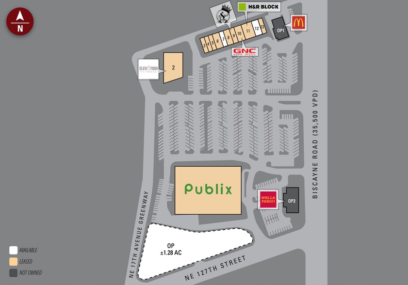 127th Street Shopping Center 12760-12890 Biscayne Blvd 960–2 880 pi² d'espace disponible • Commerce de détail • North Miami, FL 33181